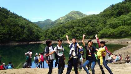 湖の前で、ハイ!ポーズ!!
