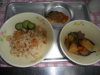 八王子しょうがごはん・・・しょうがを千切りにしご飯に炊きこみました。