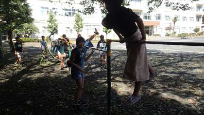 また、逆上がりが得意な児童が、丁寧にアドバイスする姿も見られました。