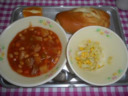 パン・ポークビーンズ・コールスロー・くだもの・牛乳