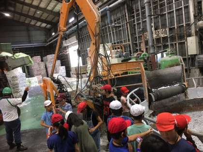 紙がリサイクルされる工程を間近で見学しました。地球釜やハルパーといわれる機械は迫力があります。