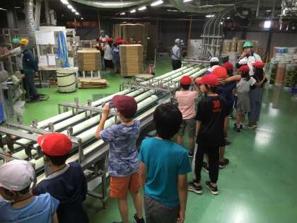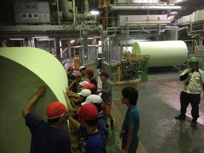 抄紙機といわれる機械から出てきたトイレットペーパーのジャンボ原紙や、リワインダーによって実際に使用される形に加工されたていく様子を間近で見ることができました。