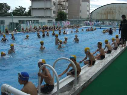 今日は午後、中学年もプールに入ることができました。子供たちは初めてのプールに大喜びでした。