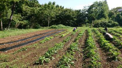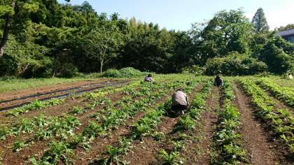 抜いても抜いても出てくる草。美味しい野菜を収穫するために、草むしりに励みます。