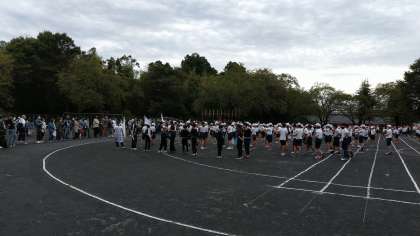 昨日までの雨があがりました。予定通り楢原小運動会はもうすぐ開会式です。