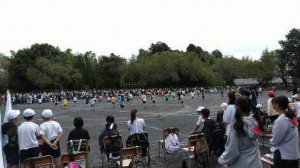 1年生2年生の表現運動「えがおいっぱい」です。後半の「ぼくらの八王子」では、上級生の応援のダンスも見られました。
