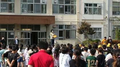 生活指導の先生からは、「10月の目標、外に出て元気に遊ぼう、を気持ちいい空のもと、みんなで意識して頑張りましょう。