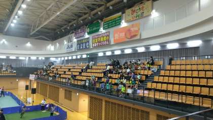 1・2年生の保護者の皆さんの御協力も得て、会場の一角に集合しました。これからの、試合観戦とパフォーマンス出演に備えます。