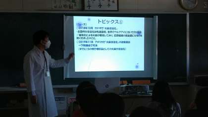6年生は、薬物に対して正しい知識をもち、自分の身を自分で守ろうとする気持ちを育むために「薬物乱用防止教室」を実施しています。講師には、学校薬剤師の佐々木先生にお願いしました。