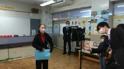 オンラインでも、各教室で元気に校歌を歌うように、荒木先生から励ましがありました。1年生に転入生を迎えました。3学期もよろしくお願いします。