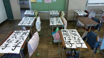 他に楢原小の新春は?と探してみると、16日(月)からの校内書き初め展の準備をしているクラスがありました。