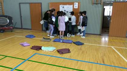 発表後に「近くで見ていいよ。」と、4年生に促されると、待ちかねたようにじっくり見ている3年生たちがいました。バトンが引き継がれた時間です。