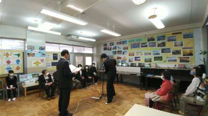 オンライン配信会場には、学校運営協議会、転入生と保護者の皆さんが集まってくださってます。