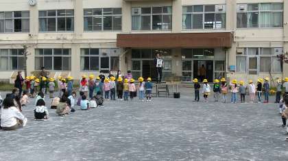 「1年生は、昨日の入学式で話したことだけど、覚えているかな。」と、校長先生から問いかけられても、「覚えてる〜」と、こたえていました。