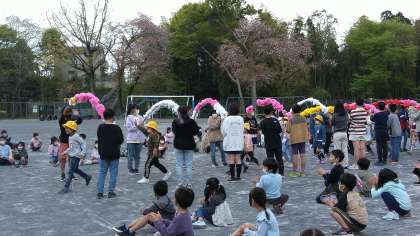 6年生の花のアーチを通って退場しました。来週は全校町会が、有ります