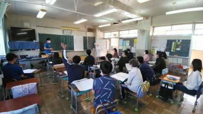 講師役の駒形先生からの問いかけに、子供たちと同じように挙手で応えます。