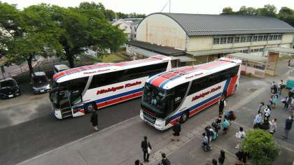 今日から5年生は、1泊2日で清水移動教室です。バスが到着しました。5年生も続々と登校しています。