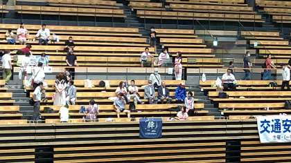 いよいよ、実技開始です。楢原小チームと応援団は、絆チームの旗の席に集まっています。