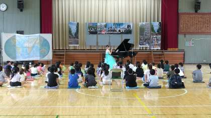 先週の月曜日に続いて、今日も平井李枝先生の音楽鑑賞教室です。3・4年生の時間です。