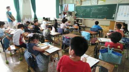 2年生の算数の時間です。どちらの学級も、「図を使って考えよう」の単元に取り組んでいました。