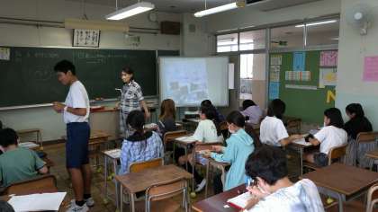 年齢が近い中学生に丸付けをしてもらう子供たちは、とても嬉しそうでした。