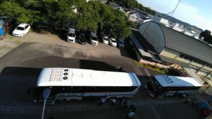 早朝から、梅雨明けを思わせるような晴天です。6年生の乗るバスは到着しています。日光移動教室に向けて、準備進行中です。