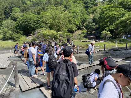 日光の湯元温泉の源泉を体験しました。全宿舎の温泉はここから引かれています。