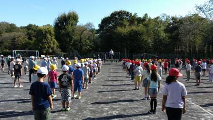 今日の全校朝会から、運動会の並び方です。運動会に向けてかまえをつくっていきます。