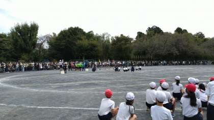 6年生の100m走が、始まりました。次は、1・2年生の『ドキドキ☆ぼくらのアドベンチャー!』です。