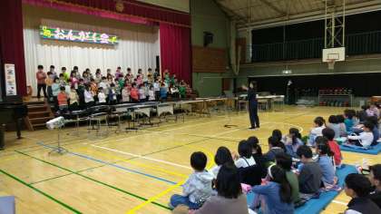 3年生の発表です。『地平線ブラックホール』のリコーダー合奏です。3年生になりリコーダーに頑張って取り組んでいます。