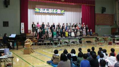4年生の『音楽物語 ごんぎつね』の合唱です。国語で読み取ったごんぎつねを、イメージ豊かな歌で、表現していました。