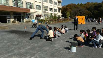 とても丁寧に指導してくださるので、3年生全員が消火体験をすることができました。