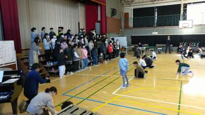3年生は、運動会で踊ったダンスを一緒に踊りましょうとお願いしました。「ここを踊ってほしい」とアピールすると、6年生も舞台のひな壇で立って踊りました。