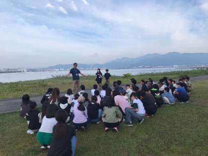 朝の会の場所には、すぐに着きました。気持ちのよい空気を重いっきり吸い込んで、二日目を楽しみましょう。