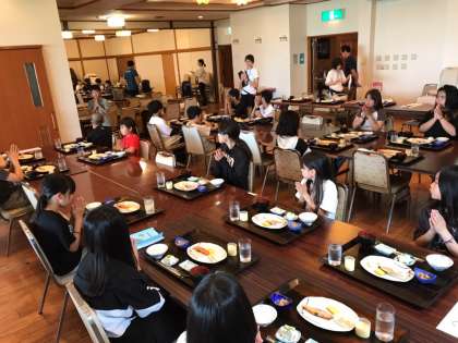 食事係のあいさつで、「いただきます!」
