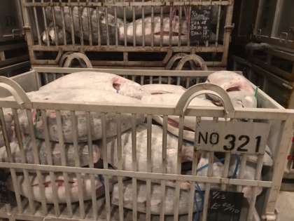 念願のマグロを見ることができました。カチンコチンに凍っています。