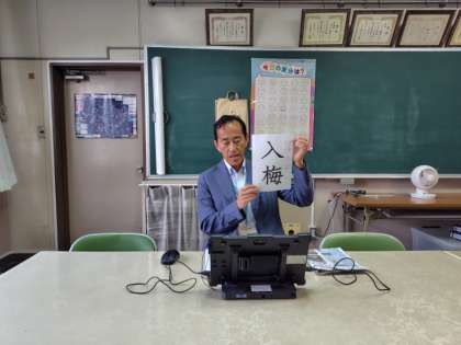 入梅の今日も、雨のためオンライン全校ちょうかいでした。月曜日が雨になるのは、8週連続だそうです。