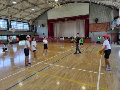 6月12日(水) 楢原中学校地区小中一貫教育の日の取組をしました。楢原小学校を会場として、授業を公開しました。6年2組の体育館でのソフトバレーボールの学習です。