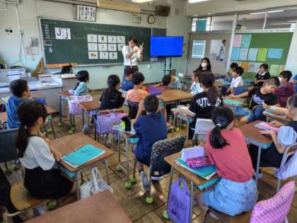 5年2組では、外国語科で ”I play soccer on Tuesdays .の学習でした。