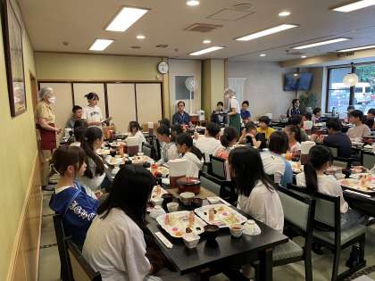 朝食をしっかり食べて、皆元気いっぱいです。湯乃湖荘特製の温泉たまごも、おいしくいただきました。