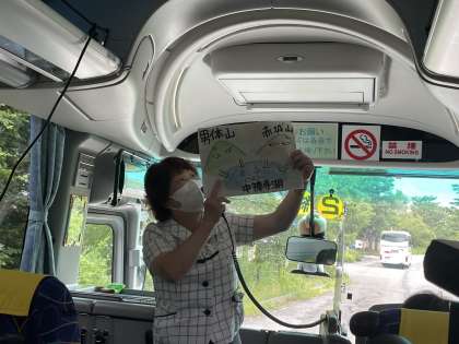 バスの中では男体山と赤城山、中禅寺湖の伝説を紙芝居で教えていただきました。