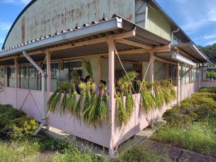 続々と稲の束が、通路の後ろに伸びていきます。お米になるまで、あと一息です。5年生の頑張りに、期待しています。