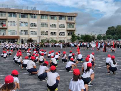 応援合戦が、始まりました。練習の成果を発揮した、応援団のリードです。