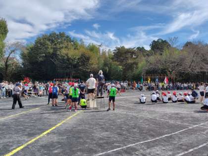 6年生の100メートル走を支える係活動は、5年生が頑張っています。