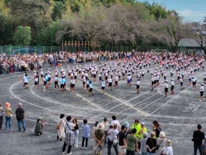 創立50周年を前に、楢原音頭の復活です。保護者の方も一緒に体を動かしている方がいました。