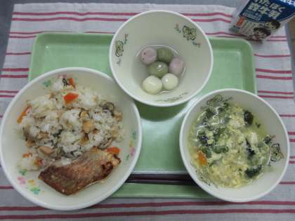 白玉は、いちごで赤色、抹茶で緑色に色づけて、