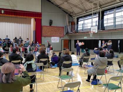 6年2組の沼田先生から先に、お礼の一言を会場の皆さんに伝えました。流れそうな涙は、卒業式の当日までとっておくそうです。素敵な演奏の素敵な時間でした。