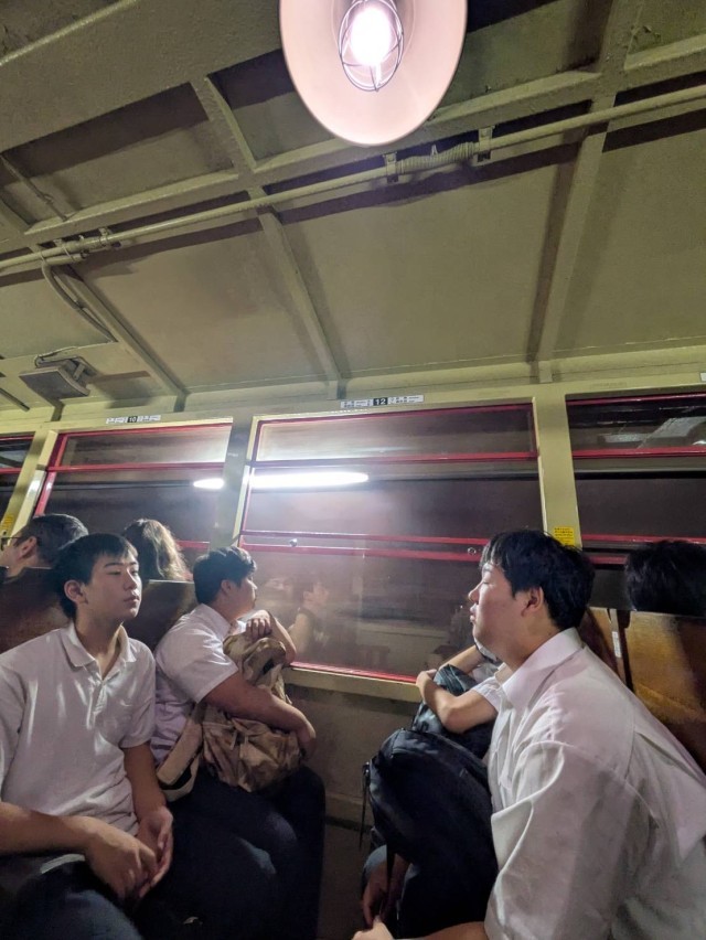 7組はトロッコ列車に乗り、自然景観を楽しんでいます!
