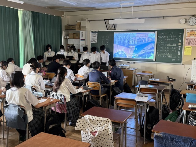 各行動班で、まわった見学地について、学んだ内容を、スライドショーにまとめ、発表しました。