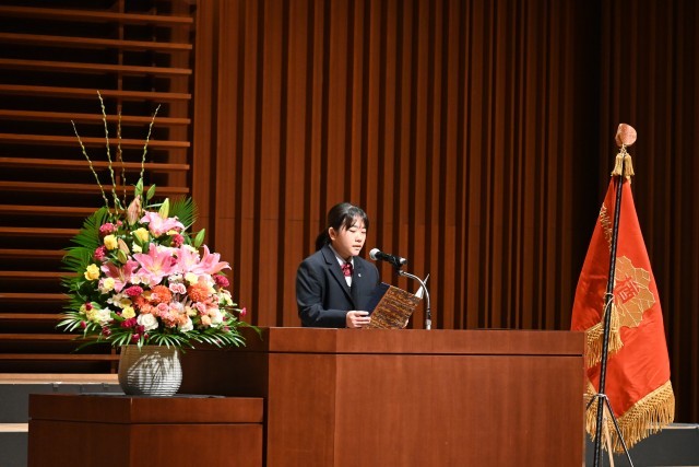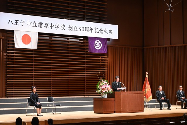 創立50周年記念式典では前生徒会長が生徒代表の挨拶として「伝統を受け継ぎ、これから先も良い楢原中学校をみんなで作っていきましょう」と立派に話してくれました。